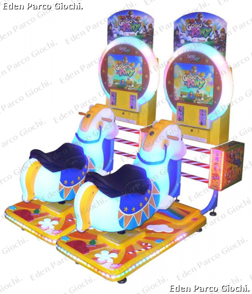 Premendo un pulsante luminoso, posto di fronte al bambino, si aumenta la velocità del pony, rendendo il gioco molto più emozionante